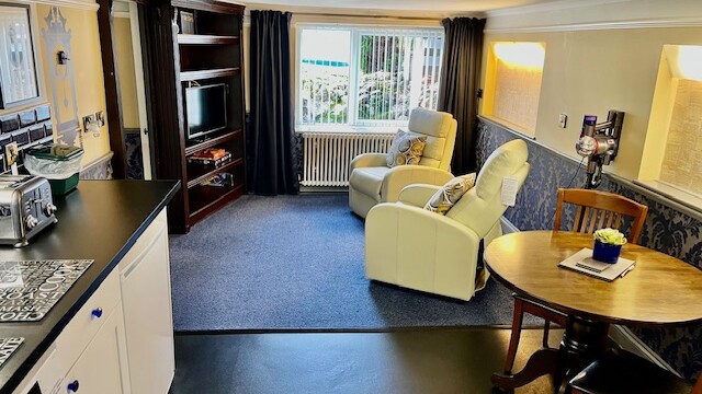 - Kitchen, lounge and dining area with TV
