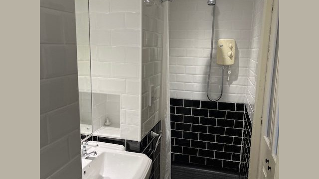 - Wet room with shower, toilet and hand basin.