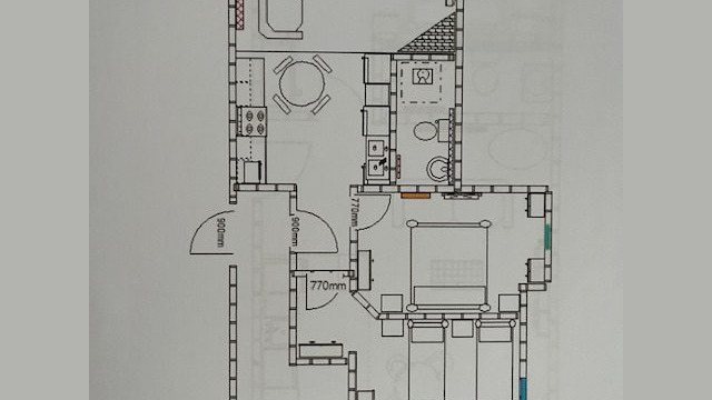 - Bedroom 1 has a Super King bed (or Twin beds) with an attached wet floor shower area with a hand basin and toilet.